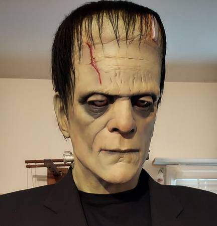 Frankensteins monster mask prop. 7ft tall ! Very lifelike and scary. Body can be seperated at the waist, k ees, and head can be removed for storage. Pick up in Winchester.