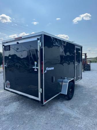 2026 6 x 12 Enclosed Cargo Trailer, black in color, Rear ramp Door, Side Door, 6' Interior,calls only